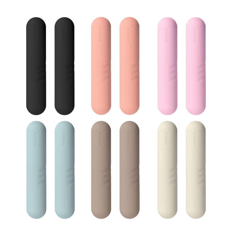 Smooth capsule-shaped silicone dumbbells in 6 muted tones. Soft-touch surface, iron sand c...